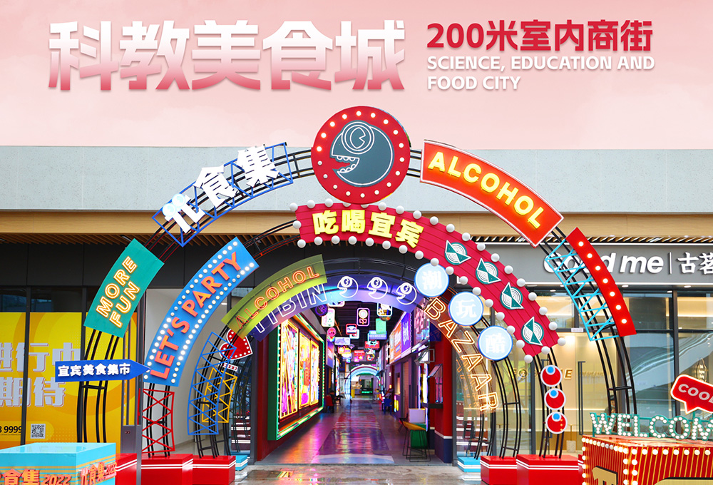 原粹商业设计案例:夜市打造美食街设计 万达小街巷商业场景设计破圈,开盘即完成100%销售认筹