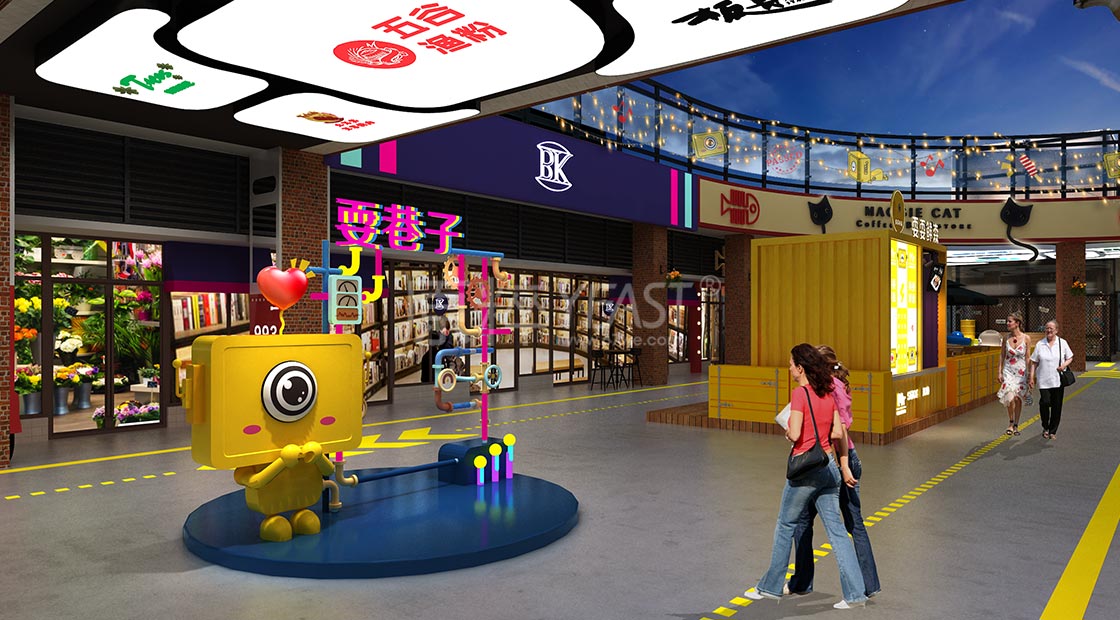 项目覆盖老城区成熟核心商圈交通便捷,自带人流量,是人口密集集文化,娱乐,休闲,美食,时尚等多远业态与一体的文艺娱乐休闲街区。我们结合项目定位,塑造超级IP形象,快速建立青白江耍巷子识别度,更为多维度的场景设计做基础,与消费者建立更有效的沟通,创建青白江的文化娱乐新地标。