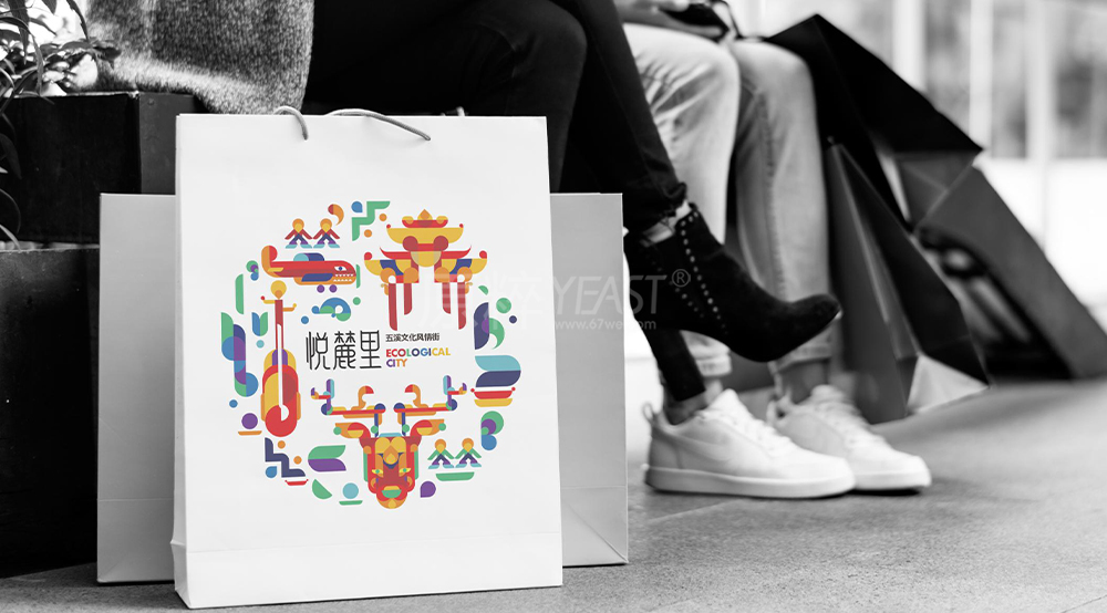 结合了本案麋鹿象征、民族图案、芙蓉楼、飞虎精神、民俗乐器马腿琴等元素,通过简化和变形,组成了缤纷多彩的——悦麓里·怀化夜市。