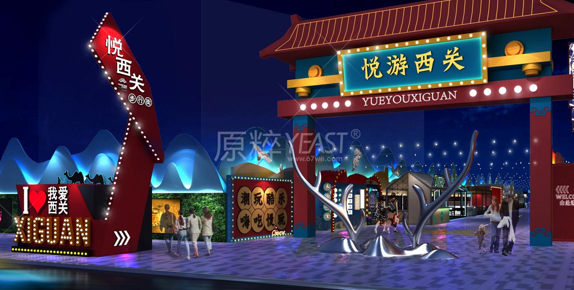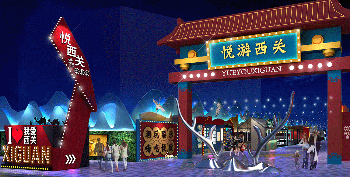 随着人们消费心理的不断变化,夜间消费新场景需要在城市不断迭代更新。在嘉峪关,原粹通过悦西关的打造,结合本地传统文化与夜经济,运用现代的手法打造了一条“文旅融合夜间经济”目标性的商业街。让悦西关步行街成为一条有美食、有网红打卡有文化历史的可体验、可触碰的街区,利用嘉峪关缺乏标志性的文旅美食商业街的空缺,建设嘉峪关商业示范街区,吸引人流,树立标杆性、打造沉浸式商业街区,引爆嘉峪关商业新活力。