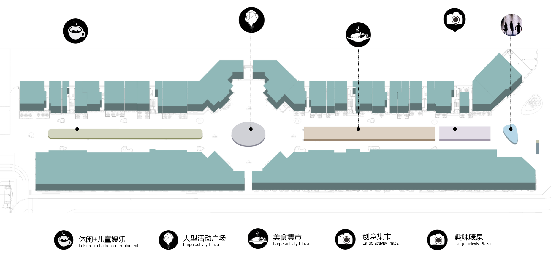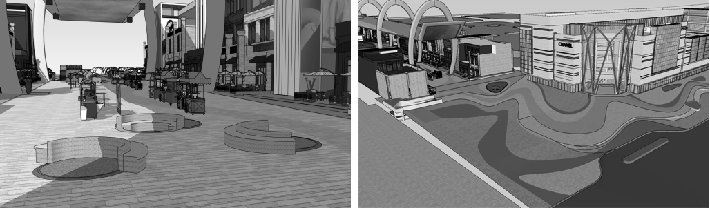 2、景观设计方案丰富了天幕下的街道,但是商业氛围不足,如何将景观融入商业,让商业自成景观是我们需要嫁接的;
