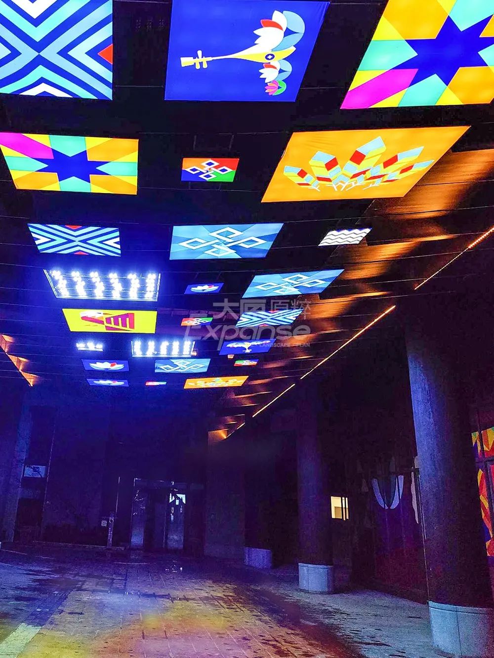 神鹰广场作为我们项目的主广场和后续活动举办地,承载着聚集人气和项目整体形象展现的重要作用,通过光影,融入藏羌的文字、符号、图案等元素,让人体验其中,沉浸其中,以文化为商业发声。