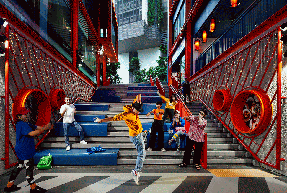 GRiD商业通过存量微更新的打造手法,将原本夹在SOTA艺术学院和几个传统的购物中心之间的“落魄旧建筑”,转变为充满主题趣味的青年社交磁场,成为新加坡网红地标商业,有效实现商业租金增长,提升商业溢价空间。