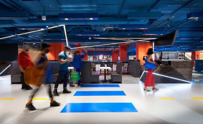 在内部空间场景创造上,搭建充满活力的“社交楼梯”,让其实现社交休憩、娱乐表演等功能。除此外,打造极具娱乐话题性的“社交洗手间”成为内容创作者和尝试新鲜产品体验的打卡地,让原本单调乏味的空间创造更多的情绪价值和传播价值。