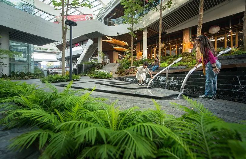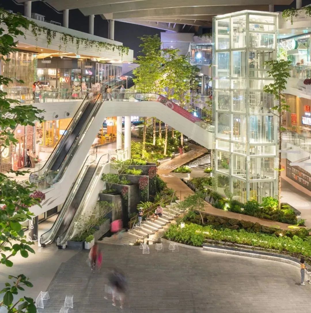 Mega Bangna商业作为一个半户外的下沉式广场,将“山谷”理念有机植入空间场景,让商业场景与自然公园融为一体,创造出一种独特的商业场景氛围。
