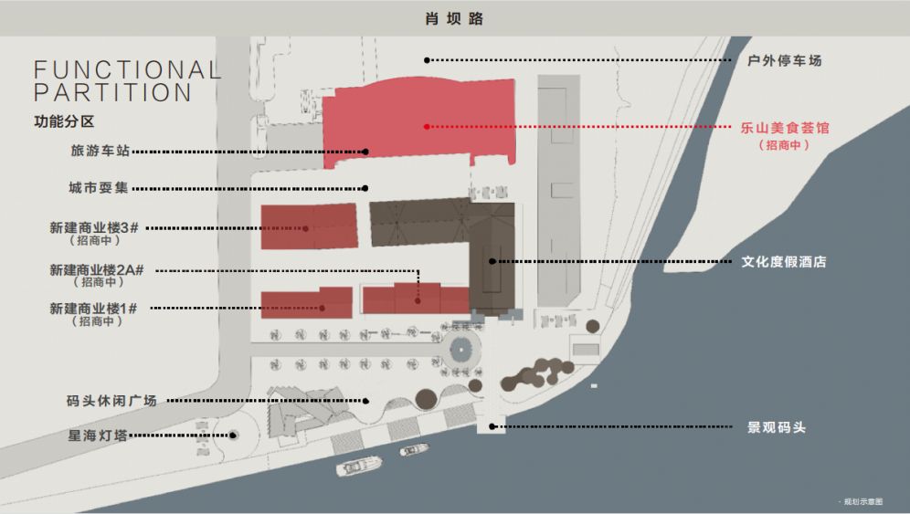 为深化“耍文化”内核,将原本功能单一的建筑体,通过合理规划布局,打造集旅游集散中心、乐山美食餐饮、潮流文化市集、高端餐饮娱乐、文化主题度假酒店、交通运输等多功能于一体的商业综合体,有效实现居民得实惠、商家得实利、城市得发展的三赢局面。