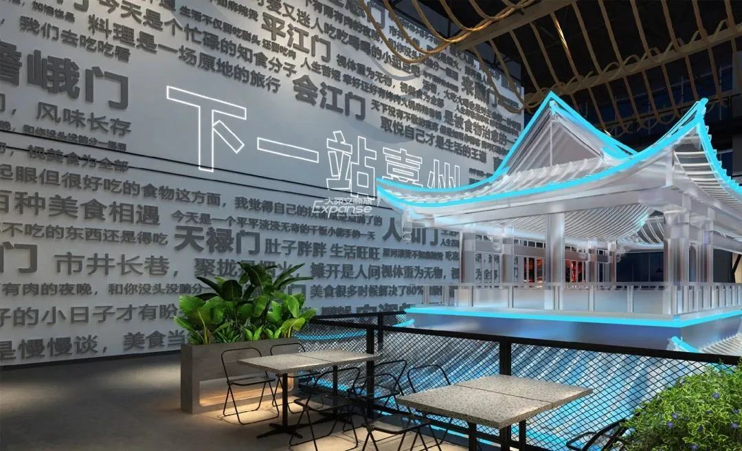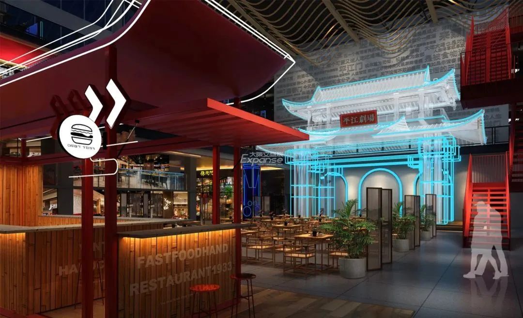 耍码头以“人间百味,馆藏嘉州”为概念出发点,融合乐山美食、码头、十八门、市井文化元素,将文化语言提炼为视觉符号与现代艺术装置结合,打造富有乐山文化的场景设计,借助场景创新深度链接消费者,重新商业活力。
