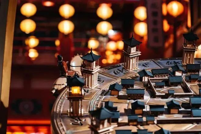 商业嫁接城市历史文脉后,再借势《长安十二时辰》电视剧的热播,与影视IP跨界合作,商业空间直接复刻了影视剧中长安市井风貌。