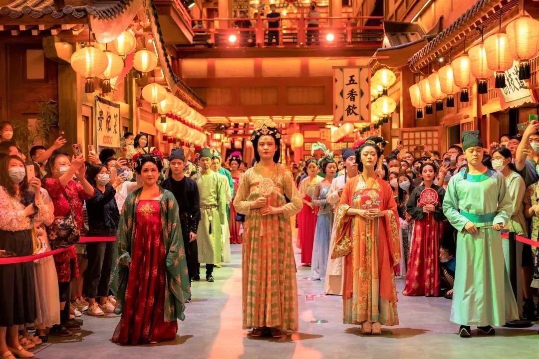 为深度体验唐风市井文化生活,商业以“唐食嗨吃、换装推本、唐风雅集、微缩长安、情景演艺、文化盛宴”等六大沉浸场为核心。