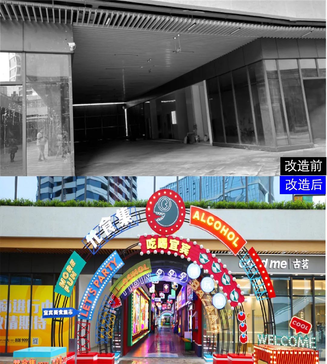 帮助科教π美食城从“无形象的室内商街”到“宜宾网红商业地标”的华丽蜕变,创造开街招商率达90%,日均客流2W+的经济效益,成为宜宾大学城活力商业地标。