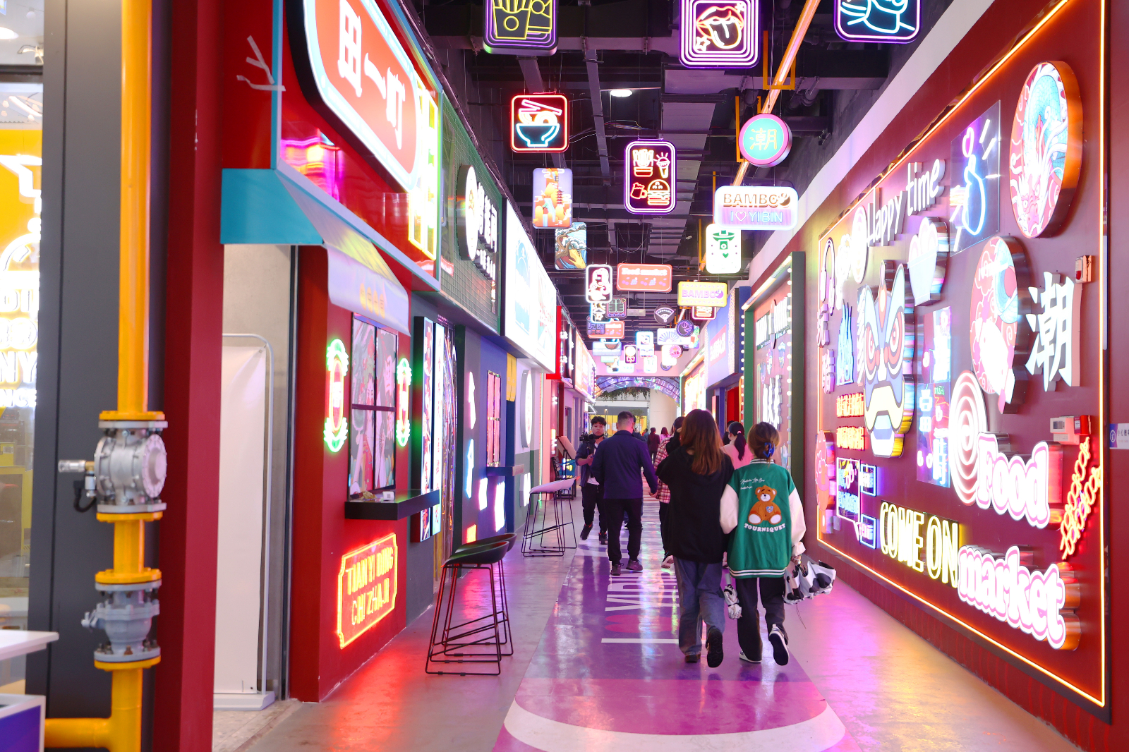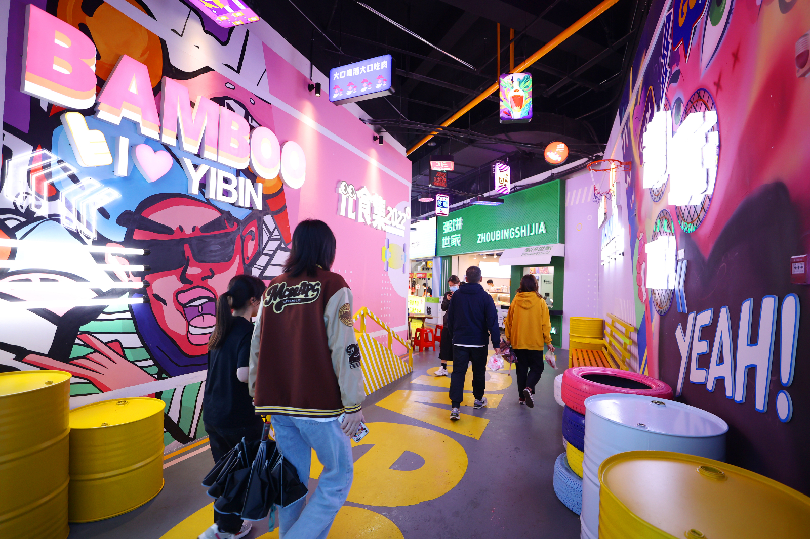 例如原粹商业打造的宜宾·科教公元π美食街,深度聚焦Z世代特点与喜好——“吃喝宜宾,潮玩酷”,融入宜宾文化特色,既“中国”又“潮”的风格成为Z时代彰显自我个性、打造个人属性的一种风向标。原粹团队以场景主题沟通与现代消费者对话,以体验带动消费,从年轻力角度出发,打造标杆性的新青年潮流聚集地。