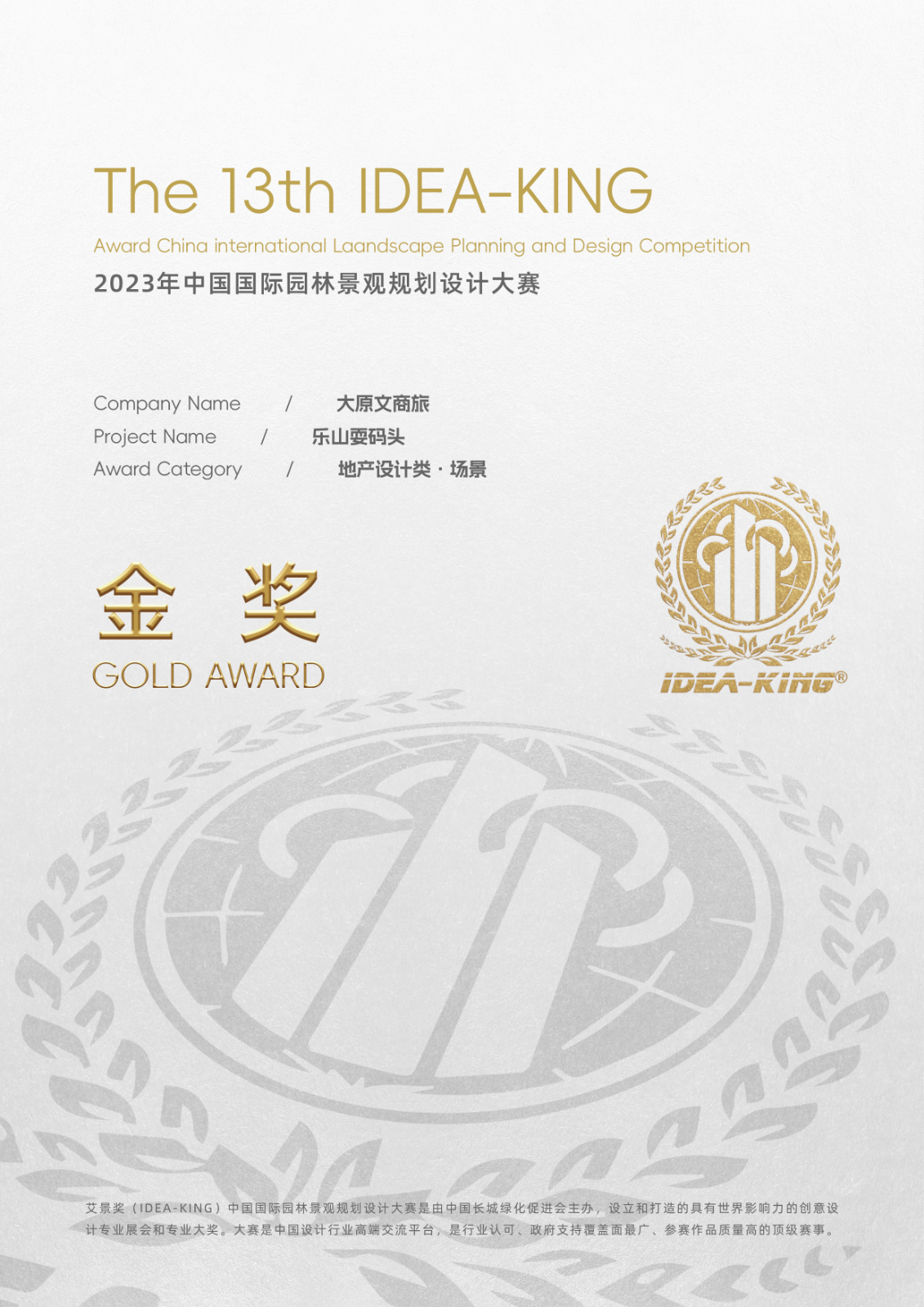 近日,2023年第十三届IDEA-KING国际艾景奖评选结果出炉,由大原文商旅设计的两个作品乐山耍码头、大源·贰叁里在众多参选项目中脱颖而出,均斩获“年度地产景观金奖”。
