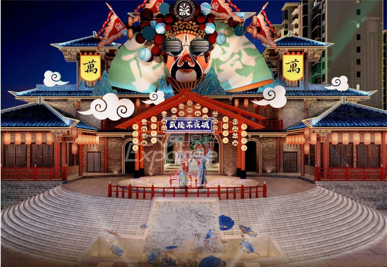 原粹提取代言城市的精神名片—“武陵戏”作为创意策略点,以山二黄国粹文化为魂,以竹溪美食为根,以夜游经济为引,叠加现代光影科技及国潮文化场景,打造“沉浸式戏曲文化主题街区”。
