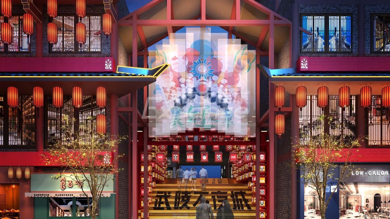 街区整体规划一轴、两序、五幕,当消费者走入武陵不夜城,即是踏入了一条跨越静谧与繁华、历史与未来、市井与人文的时光走廊,从传统戏剧舞台启程,在现代生活剧场回望,五大主题节点画面依次展开,绘就难忘的沉浸式画卷记忆。