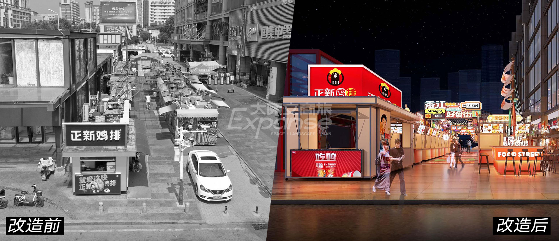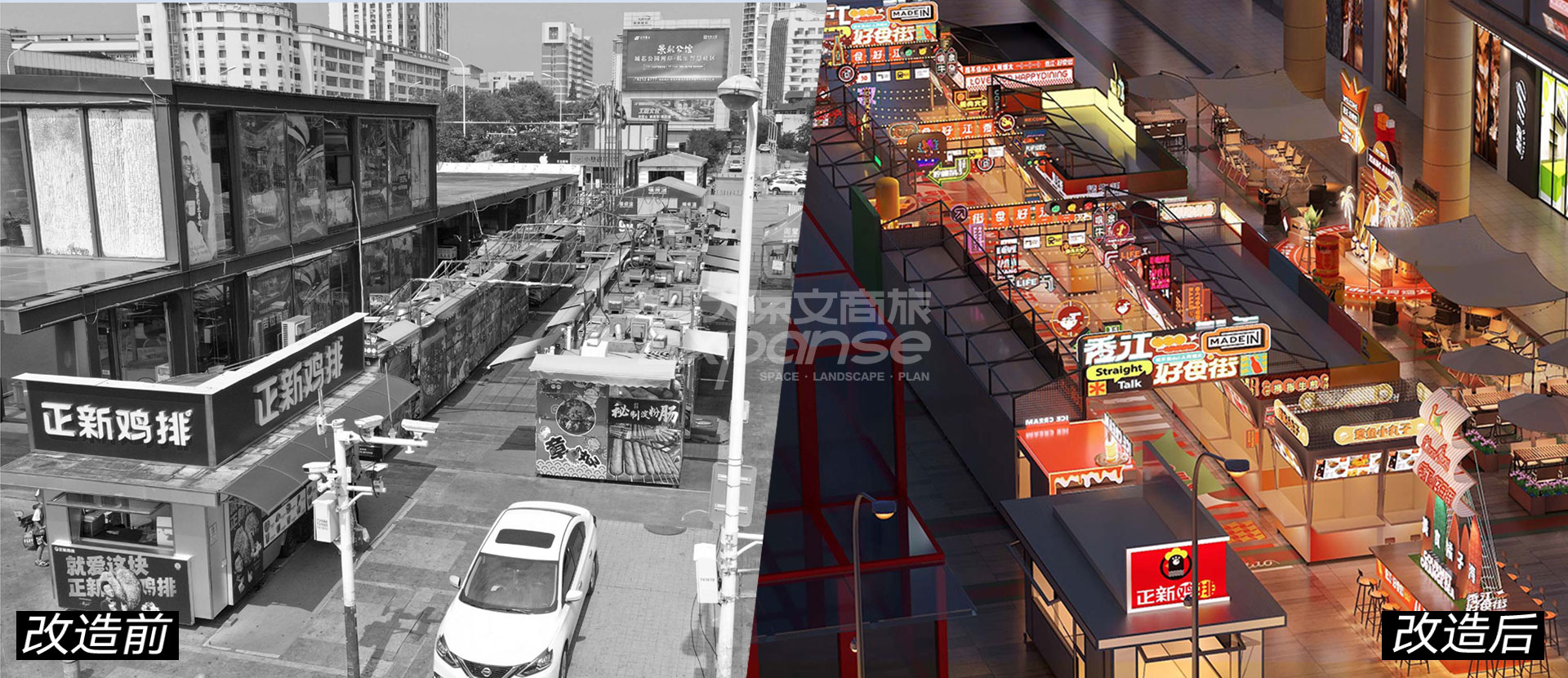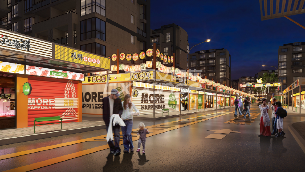 通过升级焕新,项目从“低廉小吃街”蜕变为“城市美食新主场”,成功吸引众多商家目光,实现商业价值翻一番。未来,项目将成为当地首屈一指的网红夜市消费打卡地,形成富有生机活力的“吸金场”,引发夜经济消费集群效益,带动盘活周边商业资产。