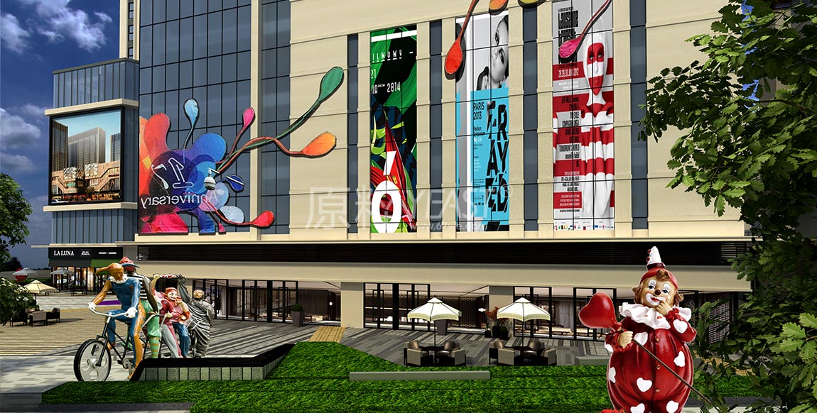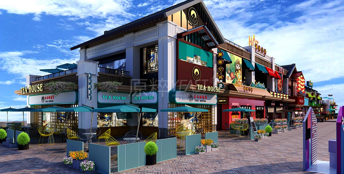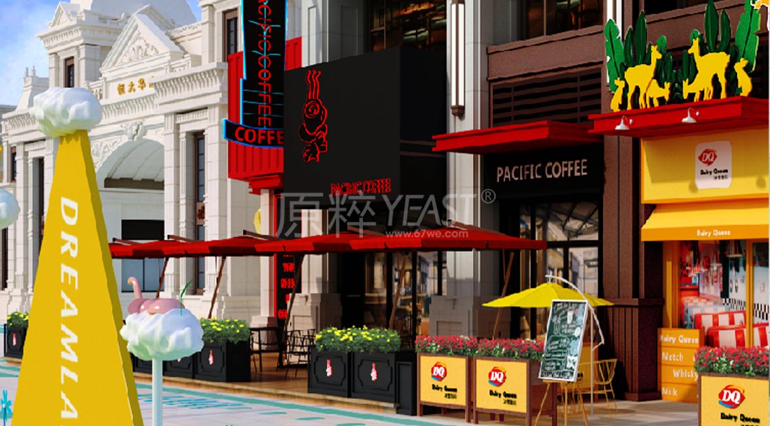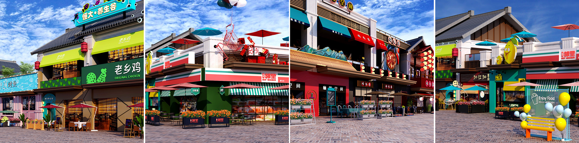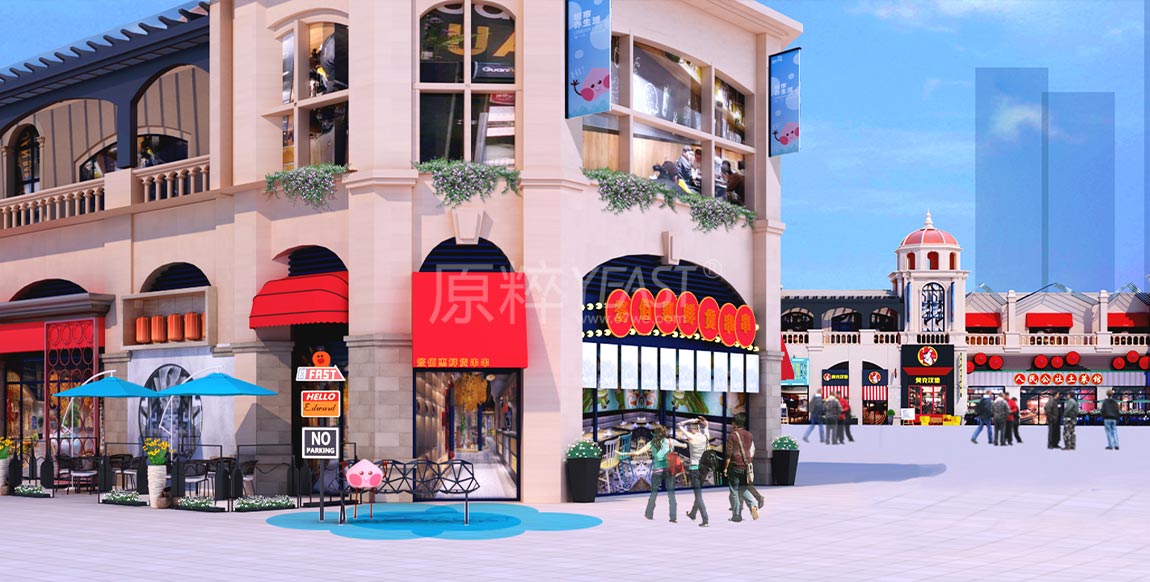 我们在建筑的色彩上选择了对比度强烈的颜色,增强街道年轻、时尚感,吸引人们的目光,同时为商业营造一个良好的氛围,带来商业的溢价空间。