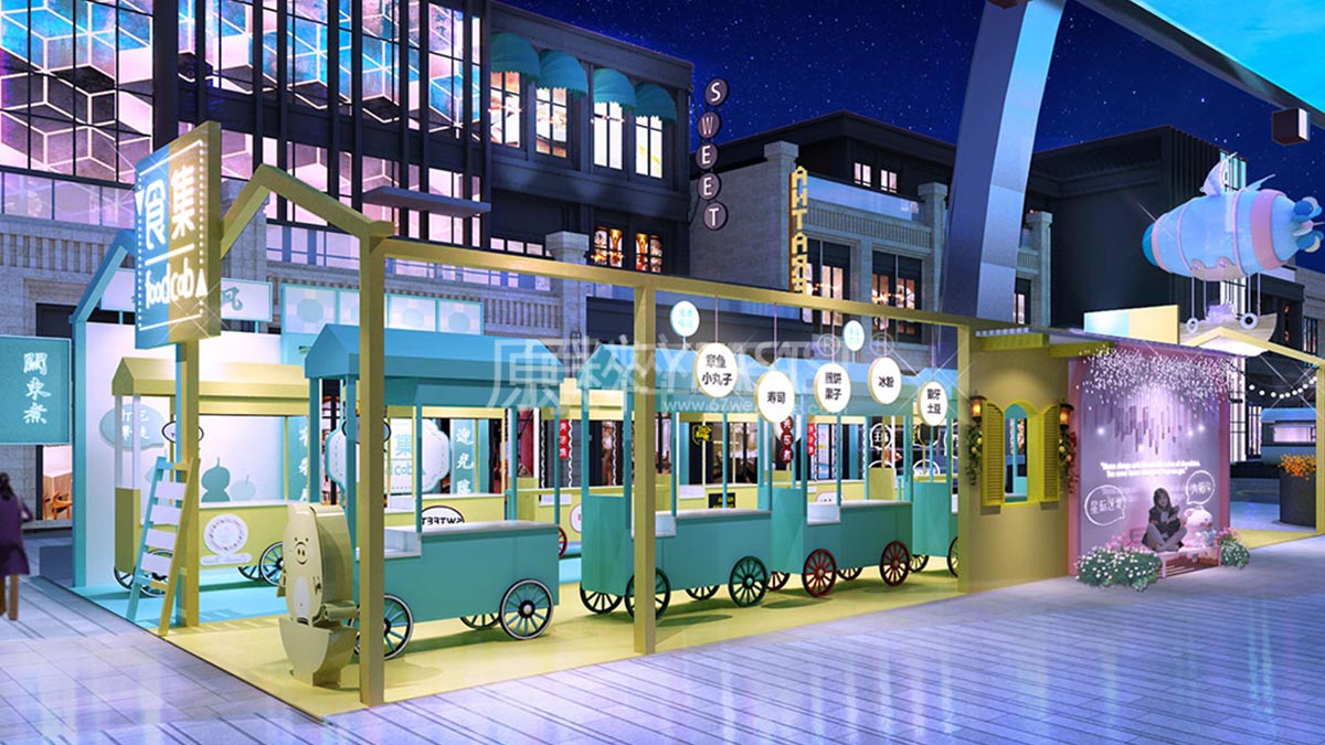夜市区域取名为“食集”也就是小吃美食的集合,相较于传统夜市相对杂乱,品质不一的情况,我们希望运用一个统一的调性处理,去改变大家对传统夜市的看法,以此打开内江“夜经济”的新面貌。