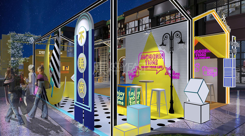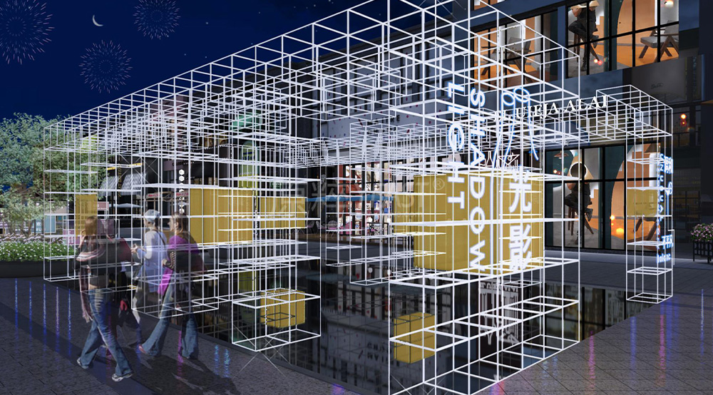 通过对门头设计以及光影墙的打造,使核心街区不管是白天还是夜晚都能做到吸引消费者目光,进行打卡留念效果。