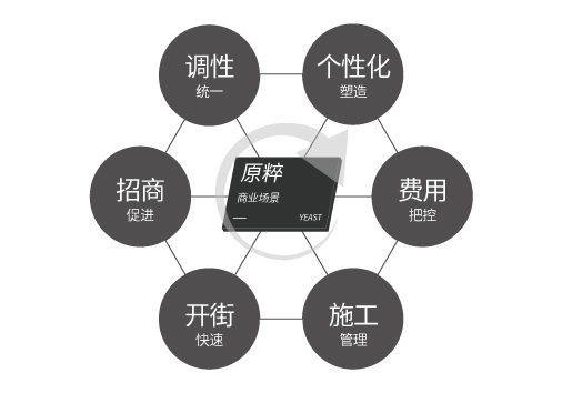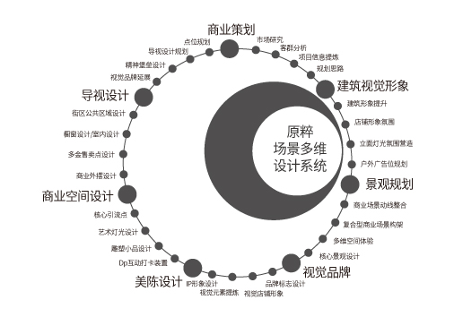 原粹(YEAST)多年来一直致力于打造“高颜值、高体验、高人气”三维一体的商业环境,创建了商业环境包装概念,研发多专业为一体跨界专业整合体系:策划、建筑、景观、空间、品牌、美陈、导视等多维一体化设计模式,创造出八大系列造梦新商业。